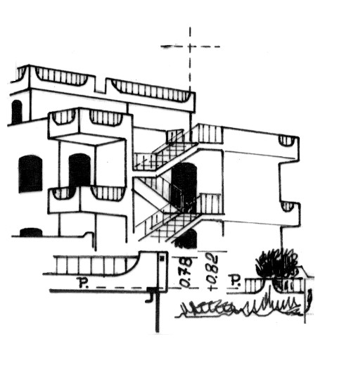 | Materializzazione | Centrino metallico cementato presso lo spigolo Nord – Ovest della terrazza più alta del condominio situato nel centro omonimo al N. 7 del viale del Centro Turistico Marinella. |