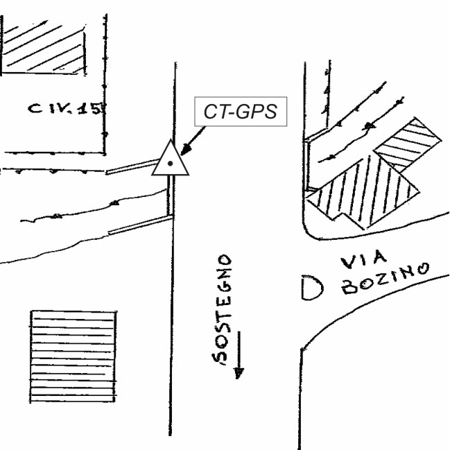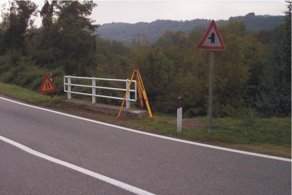 Centrino metallico infisso su un tombino in calcesruzzo, 50 m dopo mil cartello segnaletico "Sostegno".