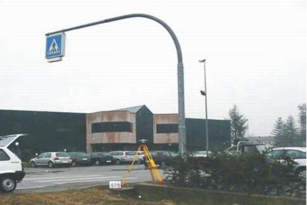 | materializzazione | Centrino metallico infisso presso l'estremità est del muro laterale del parcheggio dei dipendenti degli stabilimenti industriali. |
