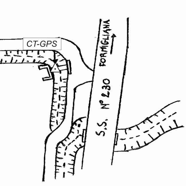 | materializzazione | Centrino metallico infisso su un manufatto in calcastruzzo a lato strada (ex basamento pubblicitario). |