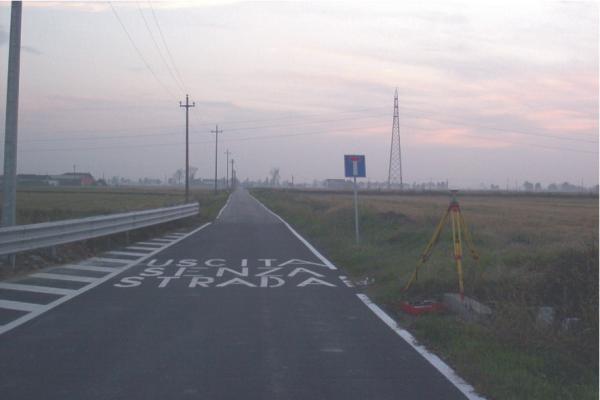 | materializzazione | Centrino metallico murato sulla spalletta di un tombino di un canale di irrigazione, dopo il segnale di precedenza. |