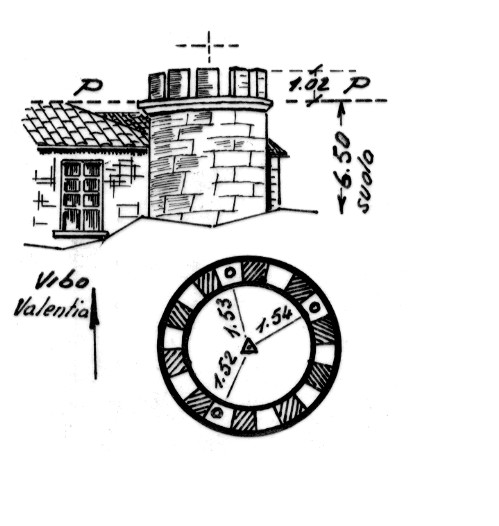 | Materializzazione | Torre a sud-ovest del fabbricato. Asse geometrico della torre. Riferimenti: Tre centrini. |