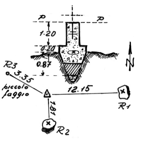 | Materializzazione | Segnale sulla vetta più alta del contrafforte omonimo. Pilastrino in calcestruzzo con centrino di superfice alla sommità e con centrino di fondo e con pietra con croce incisa alla base. Riferimenti: Tre come da pianta. |