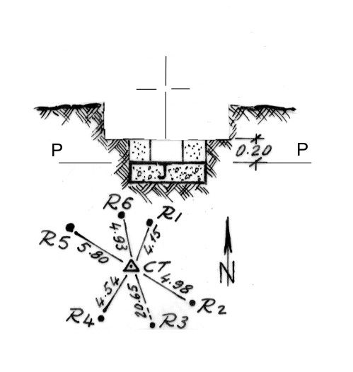 | Info ausiliarie | (2020) Alla data dell'ultima ricognizione il pilastrino è stato ritrovato divelto dal suolo, probabilmente è presente ancora il centrino di fondo. |