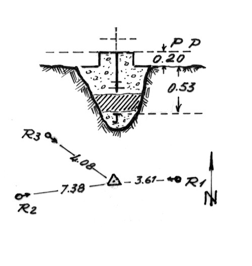 | Materializzazione | Segnale sul punto più elevato del colle della Monaca. Centrini di fondo e di superficie in blocco di calcestruzzo. Riferimenti: Tre come da pianta. |