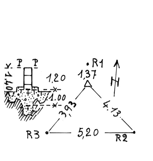 | Materializzazione | Segnale sulla sommità del monte. Pilastrino triangolare in ferro con sottostanti centrini coassiali come da sezione. Mira in ferro. Riferimenti: tre centrini metallici. |