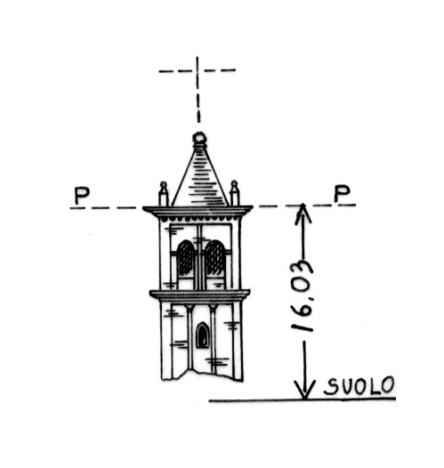 | Materializzazione | Campanile di sinistra, guardando la facciata della chiesa. Asse geometrico del campanile materializzato dalla croce terminale. |