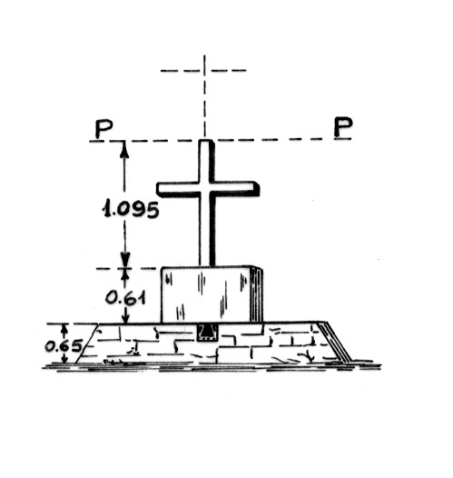 Croce in marmo (in asse col centrino metallico cementato alla sommità del vecchio piedistallo) sita sulla sommità del cocuzzolo più a Sud-Ovest dei tre che formano la dorsale omonima. Asse geometrico della croce.