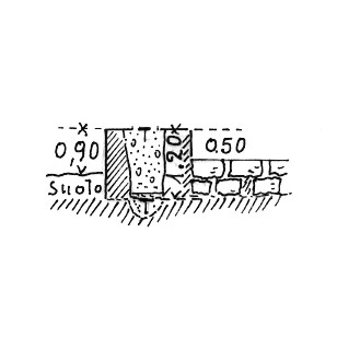 | Materializzazione | Segnale a nord-ovest di "Torre Bugiafro" sul muro di una vecchia cisterna. Blocco in calcestruzzo recante alla sommità e sottostante centrino coassiale come da sezione. |
