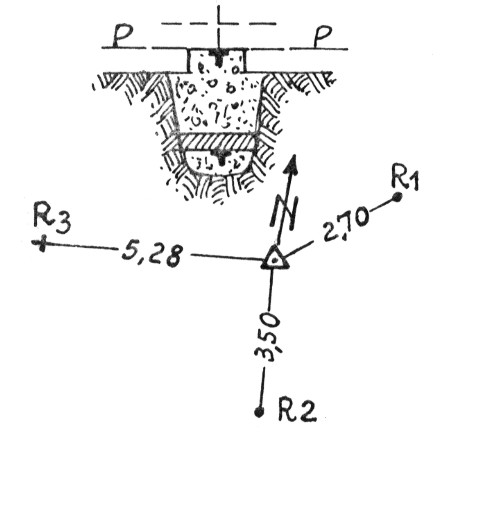 | Materializzazione | Segnale, alla base di un olivo, su di un costone a Nord-Est di Vallefiorita in località "Soverito". Centrini di superficie e di fondo. Riferimenti: R1, R2 centrini; R3 croce. |