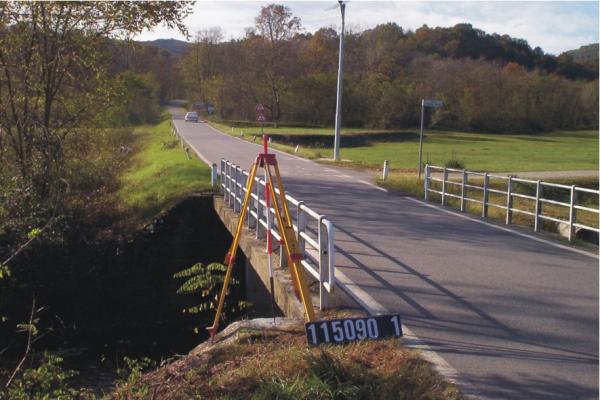 | materializzazione | Centrino metallico infisso su una spalletta in calcestruzzo del ponticello sul rio. |