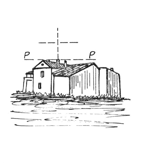 Fumaiolo più elevato della facciata Ovest della cascina omonima. Asse geometrico del fumaiolo.