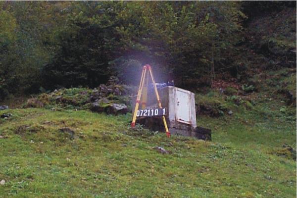 Centrino metallico murato su un basamento in calcestruzzo di una cabina Enel, situata nella parte più alta di Valbella Superiore.