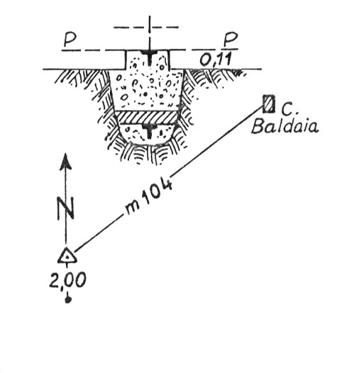 Segnale sul cocuzzolo immediatamente a Sud-Ovest di Casa Baldaia. Centrini di superficie e di fondo. Riferimenti: come da pianta.