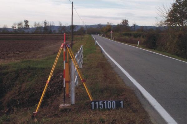 Centrino metallico infisso su una spallla in calcestruzzo di un tombino di un fosso.