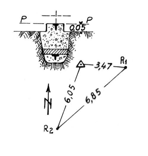 Segnale sulla cima del monte. Centrini di superficie e di fondo. Riferimenti: come da pianta.