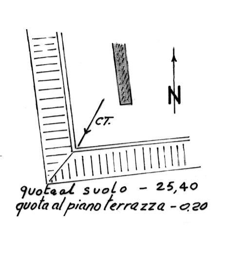 Spigolo interno del cordolo della terrazza del fabbricato (dei quattro identici quello di sud-est).
