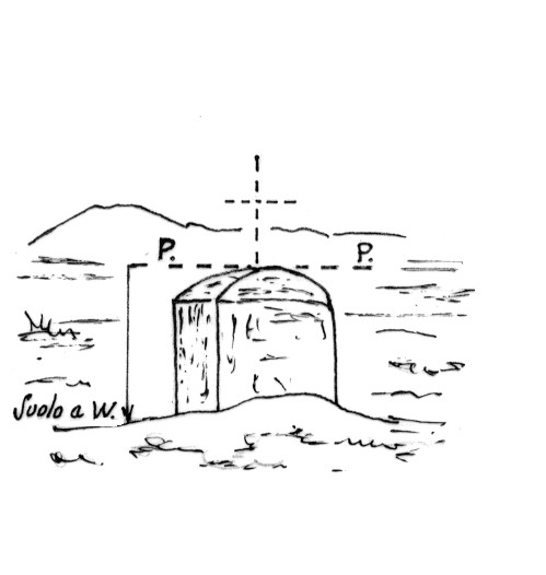 Segnale sulla sommità della garitta sita sulla spiaggia a circa 500 metri a nord del F. Amato. Centrino metallico cementato in asse alla garitta.