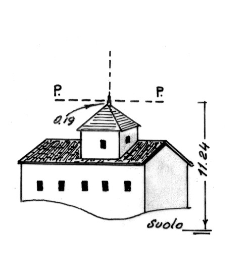 | Materializzazione | Pilastrino posto sul colmo del tetto a padiglione della torretta quadrata della casa in cima alla collinetta, sita in contrada Vatalaro. Asse del pilastrino. |