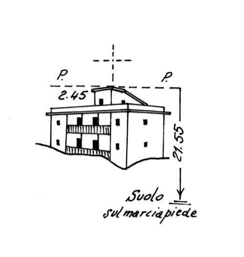 Centrino cementato al centro del copriscala del fabbricato posto più a nord dei due uguali sito in Via Mare n. 79. Asse geometrico del copriscala.