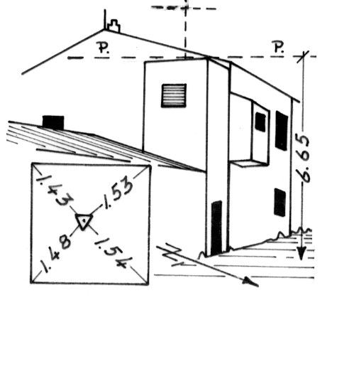 Centrino metallico cementato sulla copertura piana di una ex cabina elettrica sul lato Nord della casa colonica omonima. Riferimenti: n. 4 spigoli come da pianta.