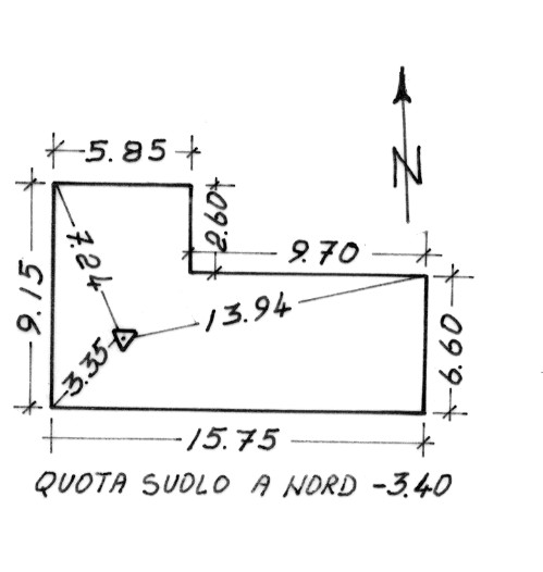 | Materializzazione | Centrino metallico cementato sulla copertura piana della casa isolata sul cocuzzolo a circa m. 350 ad Est di casa Mancino. Riferimenti: n. 3 spigoli della copertura come da pianta. |