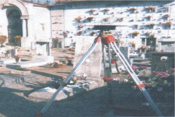 | materializzazione | Spigolo sud-ovest del cordolo in marmo che contorna la lastra tombale in marmo scuro della sepoltura del defunto "Vecchietti Pietro". |