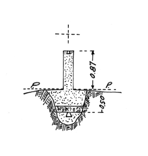 Segnale sulla sommità del poggio. Centrino di fondo in zinco e di superficie in vetro cementati in un blocco di calcestruzzo sormontato da un pilastrino cilindrico. Asse geometrico del pilastrino. Coincide con un punto della rete fondamentale magnetica.