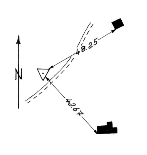 | Materializzazione | Segnale sul costone. Centrino di superficie e di fondo cementati in blocco di calcestruzzo. Riferimenti: 2 come da pianta. |