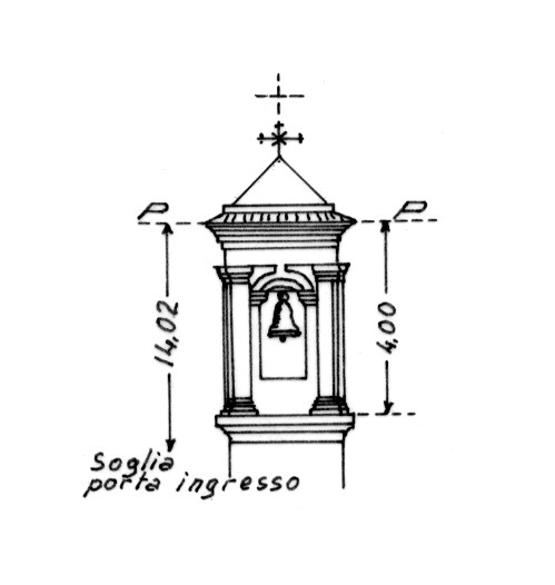 | Materializzazione | Campanile della chiesa parrocchiale. Asse geometrico del campanile. |
