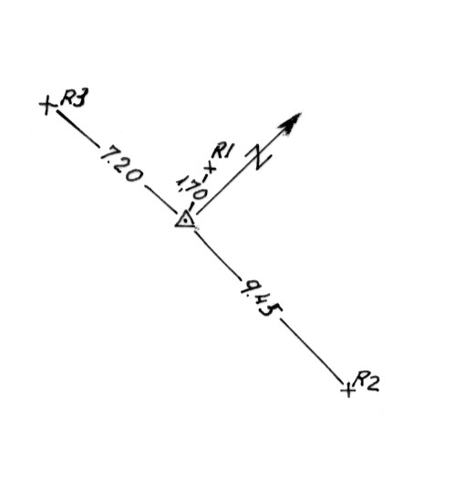 Segnale sulla sommità di un poggio denominato i Serri. Centrini di fondo e di superficie cementati in blocco di calcestruzzo. Riferimenti: n. 2 come da pianta.