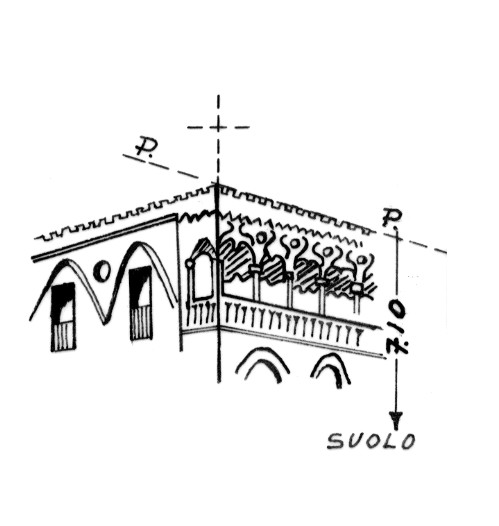 | Materializzazione | Segnale sul piano della terrazza, allo spigolo Nord-ovest della villetta, nella parte più alta dell'abitato. Centrino cementato. |