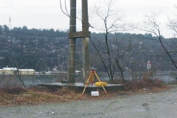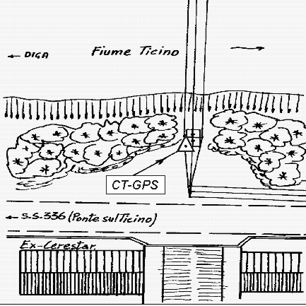 Centrino metallico infisso sul basamento di un palo doppio di linea elettrica, di fronte al cancello di accesso agli stabilimenti della ex Cerestar