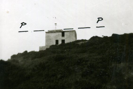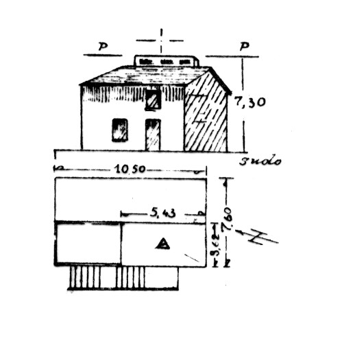Segnale al centro della terrazza più alta del fabbricato situato nella parte più alta del monte. Centrino di superficie cementato al piano della terrazza e centrino di fondo al piano della stanza sottostante.