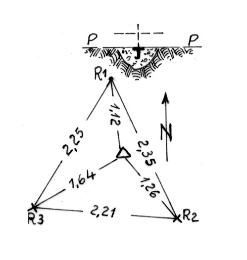 | Materializzazione | Segnale sulla sommità del monte. Centrino di profondità cementato a livello del suolo. Riferimenti: due croci incise su roccia, R1 centrino di rif. |