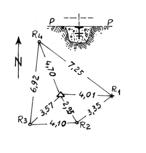 | Materializzazione | Segnale sul punto più alto del monte. Centrino di superficie cementato a livello del suolo. Riferimenti: R1 croce incisa su roccia; R2, R3, R4 centrini. |