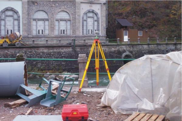 Centrilino metallico posto sul muro di spinta dall'argine del fiume.