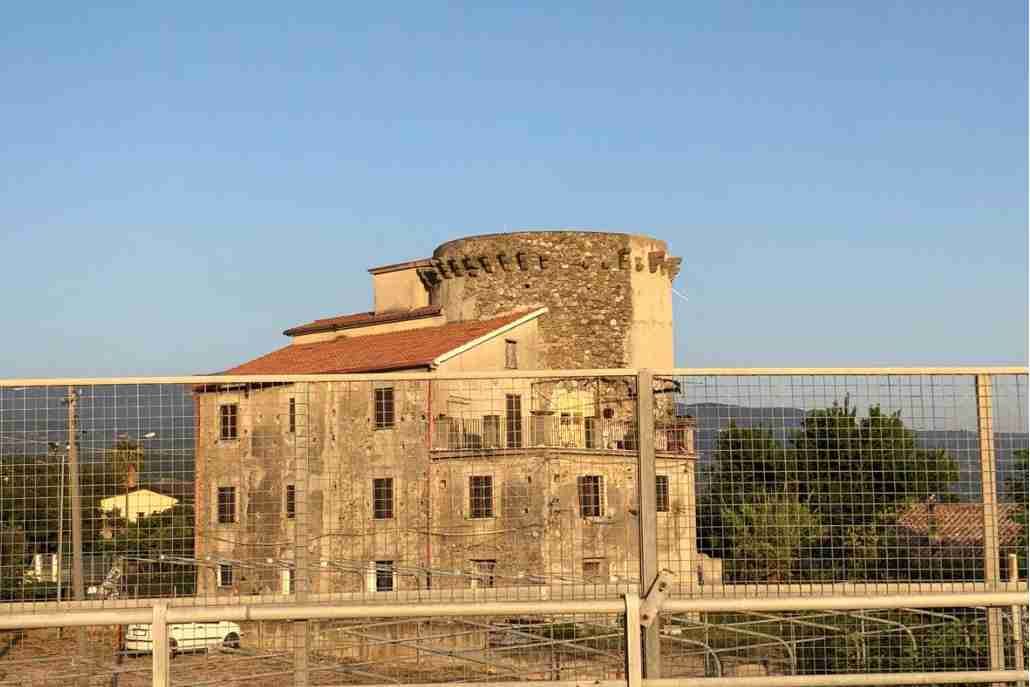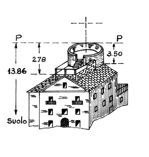 Segnale sul terrazzo della torre omonima sita a 300 metri circa dalla stazione ferroviaria di Aiello Calabro. Centrino di fondo cementato a livello del piano ed al centro della torretta circolare.