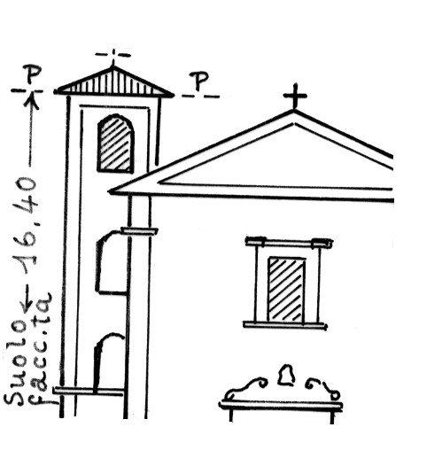 | Materializzazione | Asse geometrico del campanile della chiesa di San Michele, materializzato da centrino metallico cementato nel pavimento del campanile a piano terra. |