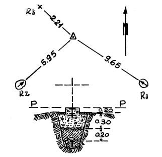 | Materializzazione | Segnale sulla sommità del contrafforte ad est di Spezzano. Centrini di superficie e di fondo. Riferimenti: Tre come da pianta. |
