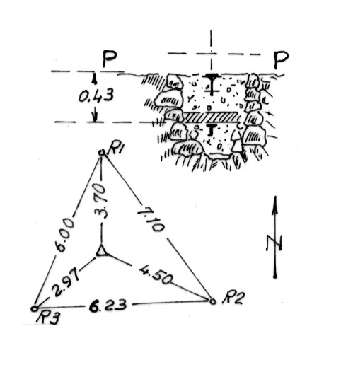 Segnale sulla parte più alta del monte. Centrini di profondità e di suprficie. Riferimenti: tre centrini.