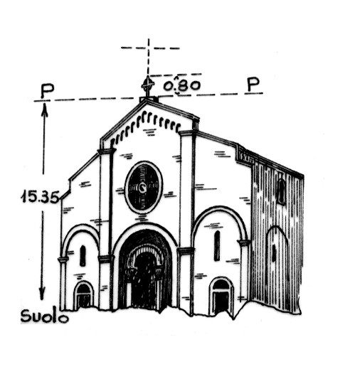 | Materializzazione | Croce in ferro sulla sommità della facciata della nuova cattedrale. Asse della croce. |