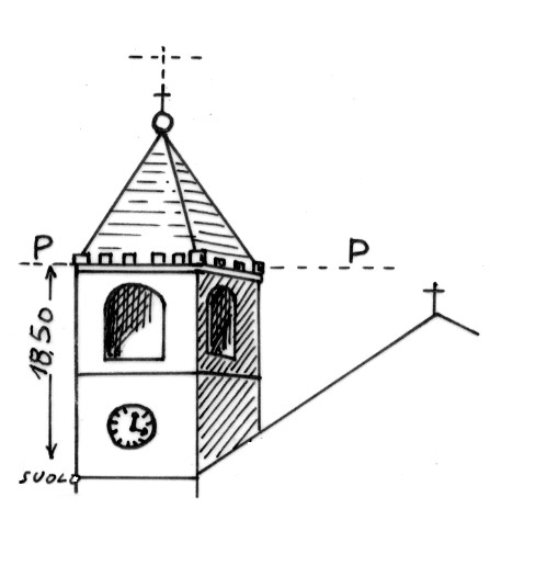 | Materializzazione | Campanile della chiesa di San Bartolo. Asse geometrico del campanile. |