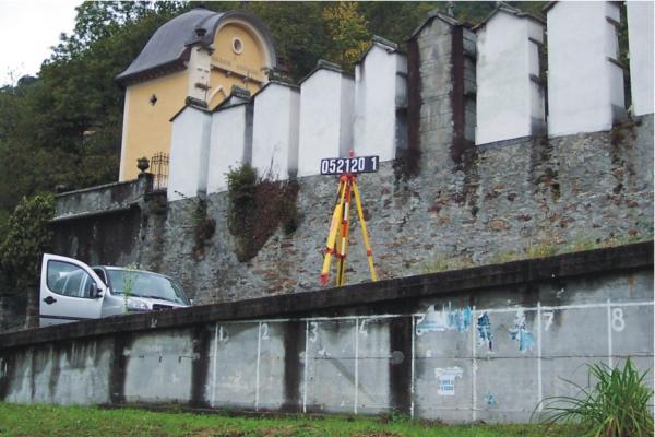Centrino metallico posto sul muro di sostegno della strada sterrata di fianco al cimitero.
