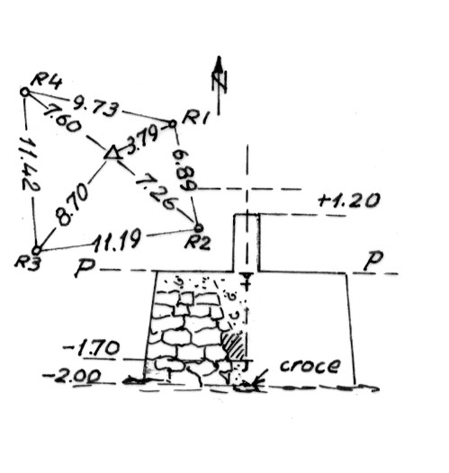 Segnale sulla punta omonima. Croce incisa su roccia, centrino di fondo e sovrastante basamento in muratura con centrino di superficie alla sommità, in asse al quale è stato eretto un pilastrino di ferro. Riferimenti: quattro centrini. Accesso: