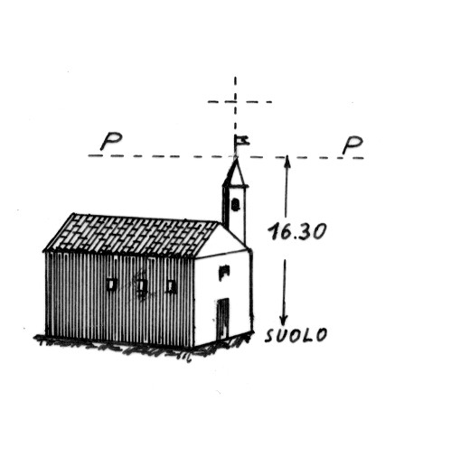 Campanile della chiesa del villaggio. Asse geometrico del campanile.