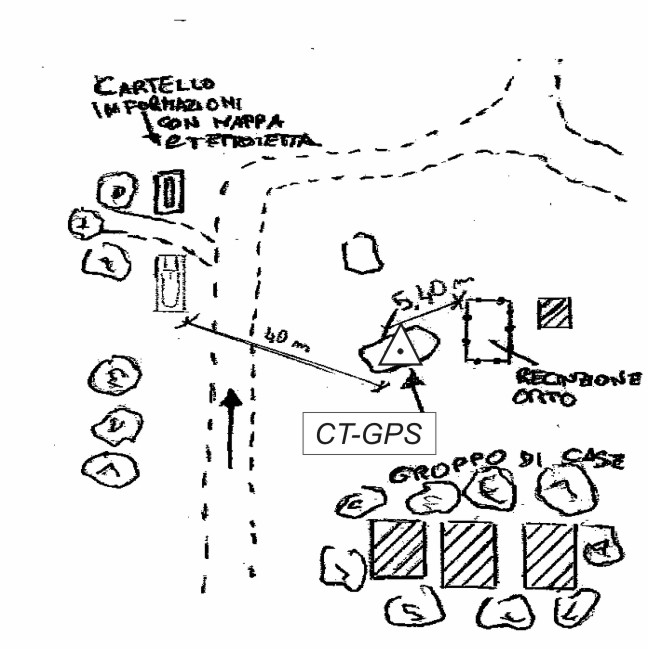| materializzazione | Centrino metallico posto su roccia a fianco di un orto recintato fra la casa e un abbeveratoio. |