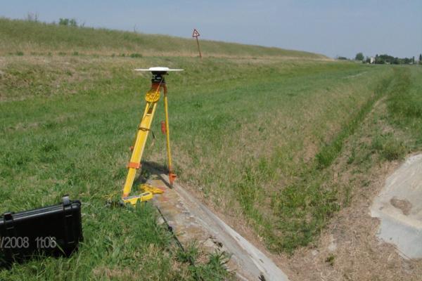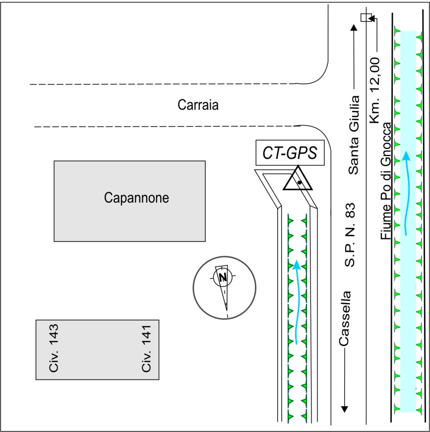 | materializzazione | Centrino GPS universale in acciaio inox infisso nel cordolo della spalletta in cemento armato del fosso antistante il capannone. |