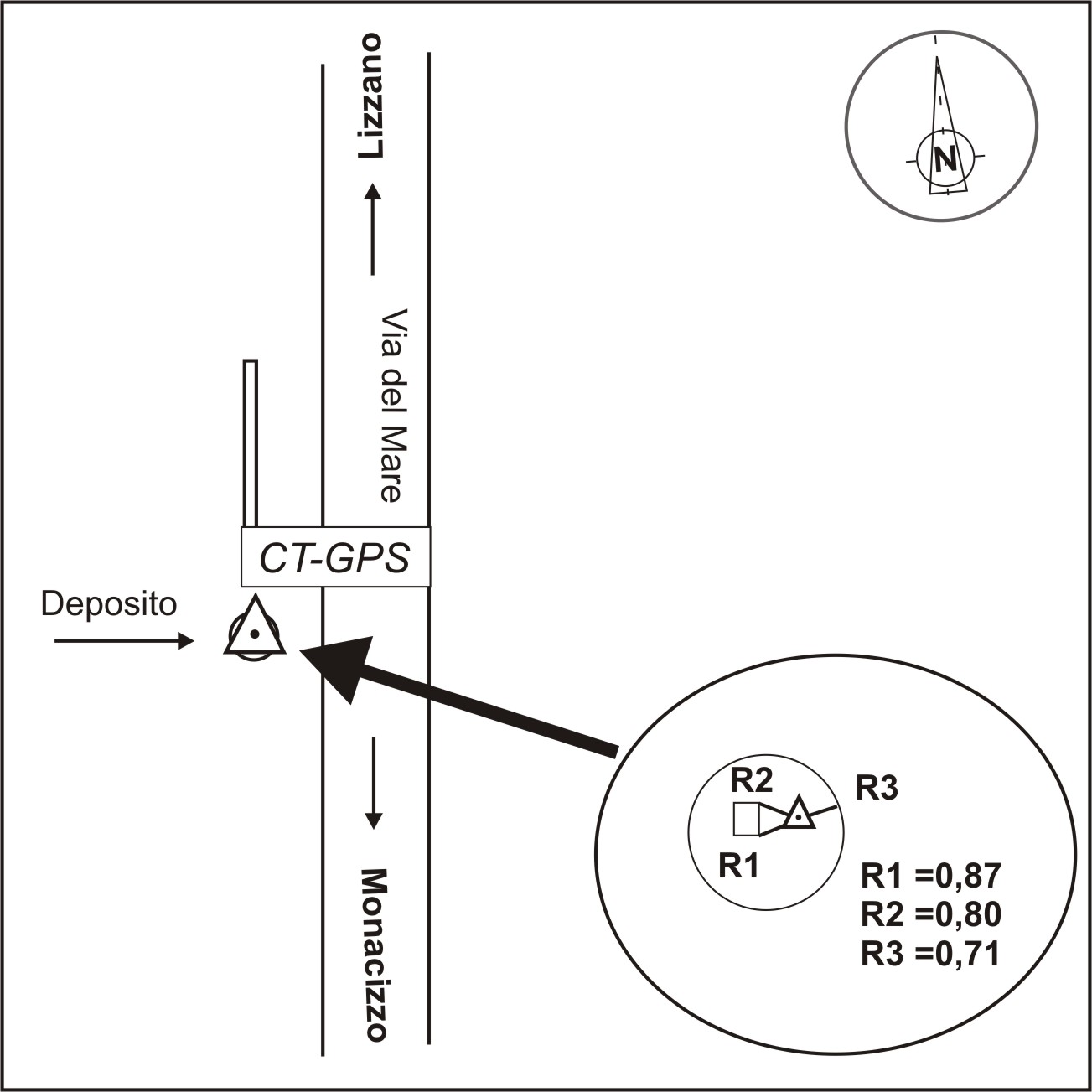 | Coordinate ETRF2000 | 40°23'3"N, 17°26'58"N |