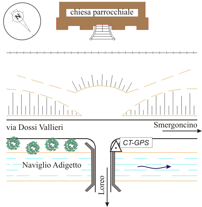 | materializzazione | Centrino universale infisso sul parapetto destro del ponte, guardando la chiesa, sul Naviglio Adigetto. |